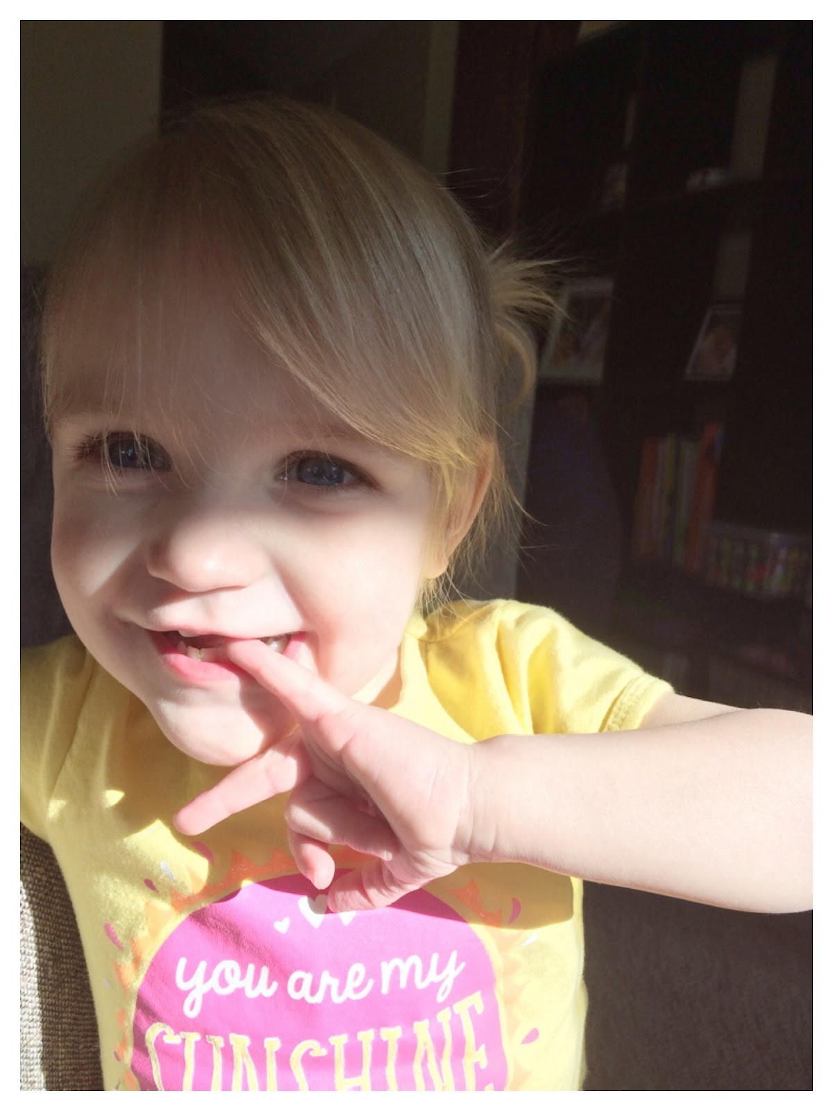 We are on our way to Florida! Miss M is such a great traveler (as long as we have videos going for her!). We purchased a couple new videos for this trip and lucked upon a Daniel Tiger DVD in which he learns that he is going to be a big brother. It couldn't have been more perfect. Miss M kept telling the video that she was going to be a big sister (not a big brother)! All of the time spent in the car tuckers her out though.
